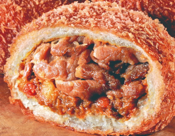 牛肉の旨みと、スパイシーなカレーの味わいが口いっぱいに広がる、贅沢なカレーパンです。